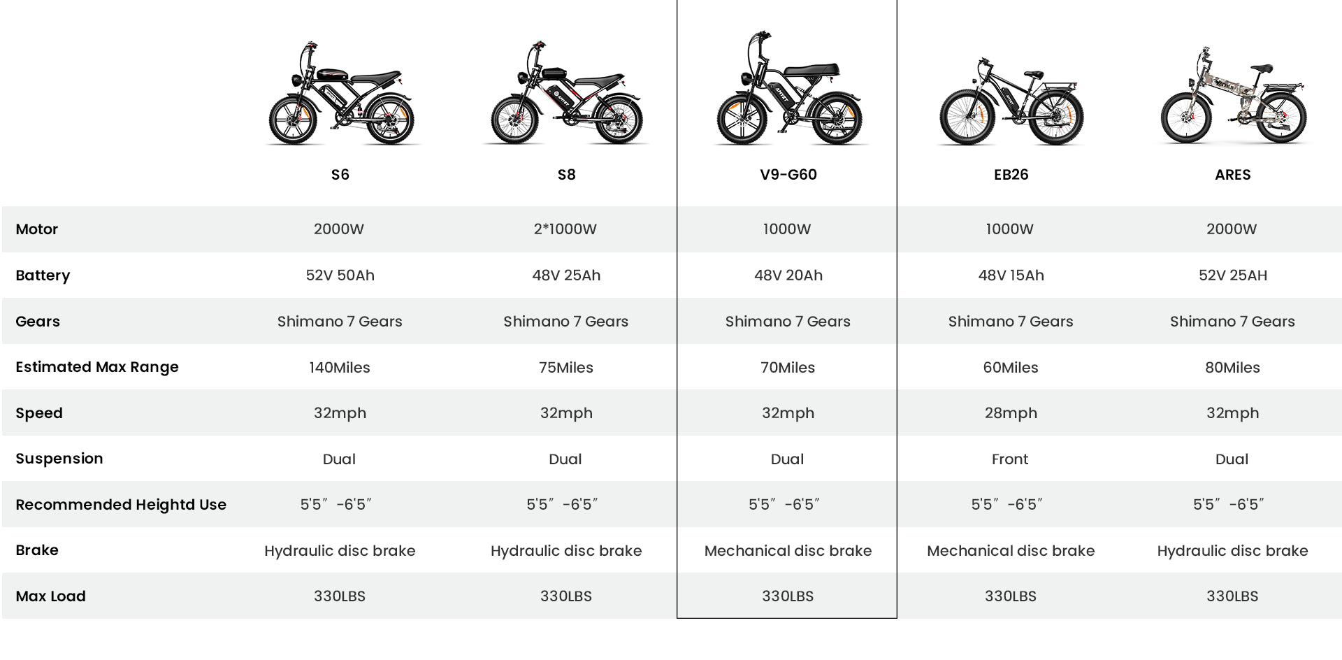 Our e-bike is equipped with a detachable 48V 20AH battery, providing an impressive range of 30-70 miles on a single charge. No more worries about running out of juice during your explorations. And with a quick 7-8 hours recharge time, you'll be back on the road in no time.